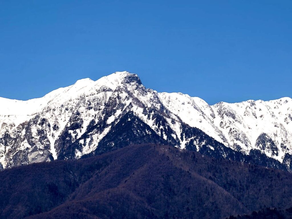 そしてこちらはもしかしたら木曽駒ケ岳かと思っていたら、左が赤椰(あかなぎ)岳2798m、右が田切岳2730mだそうです。