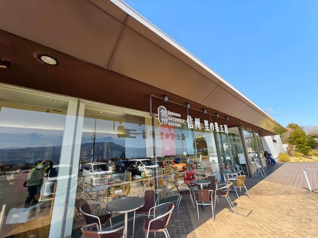 と、風景を堪能しつつ道の駅のお隣にある「信州里の菓工房」さんへ移動