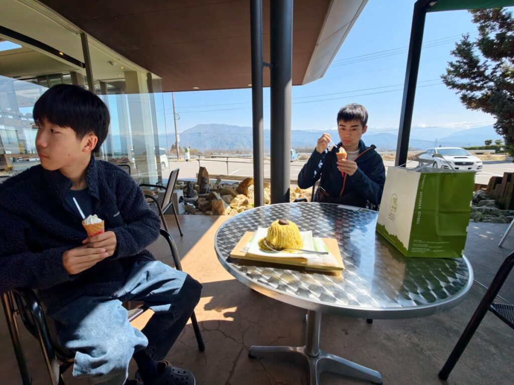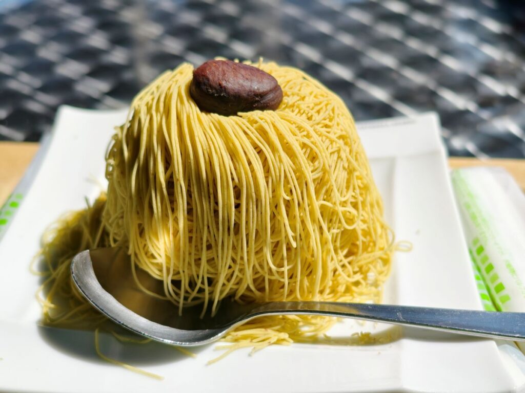 一通り(奥さんが)買い物をしたら、折角なのでこちらの店舗限定商品のできたてモンブランを頂きました。