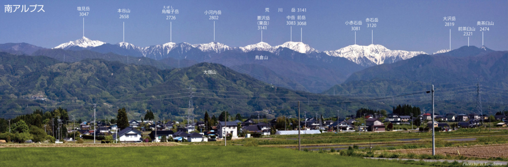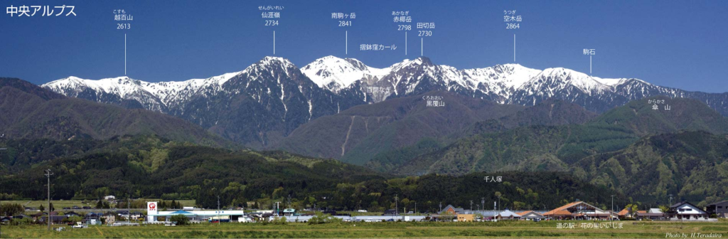 道の駅花の里いいじまさんのHPによると、ここから見えるアルプスの山名はこちら