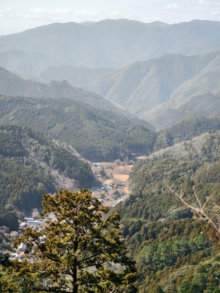 眼下には鳳来寺参道の階段下に続く門前町が見えます。