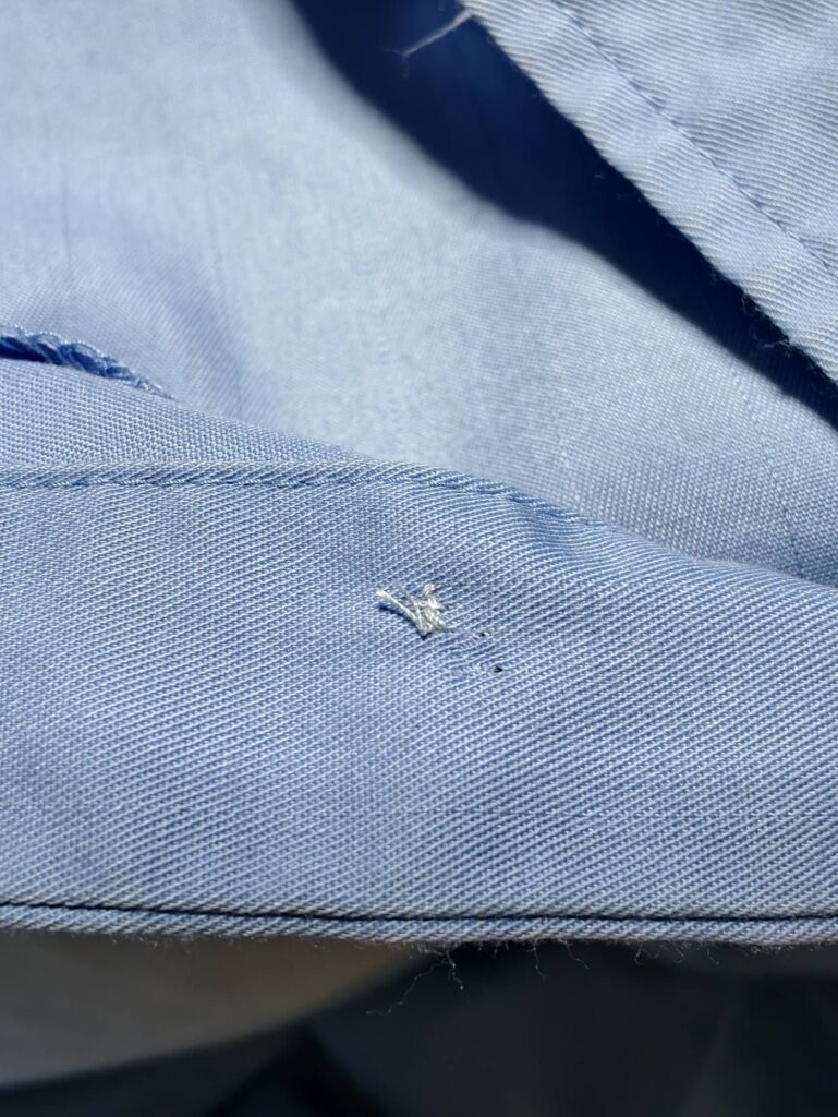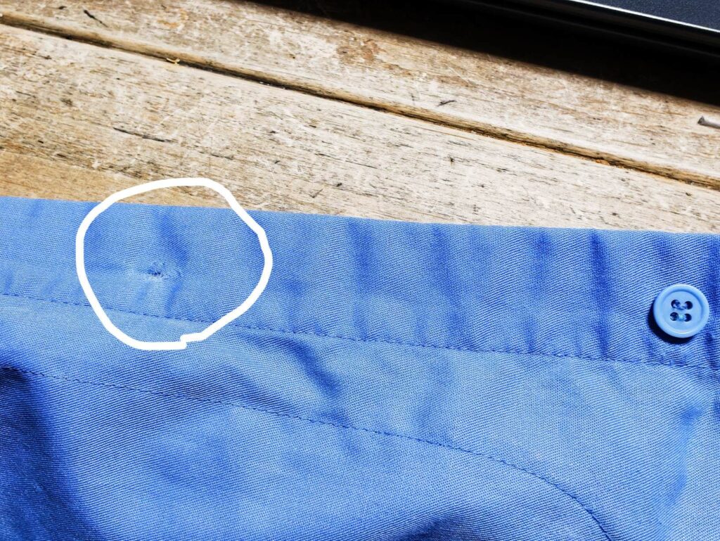 幸い針にちょうど社服と同じ色の糸が付いていたのでそのまま利用させてもらい、糸は2重にして針作業開始。