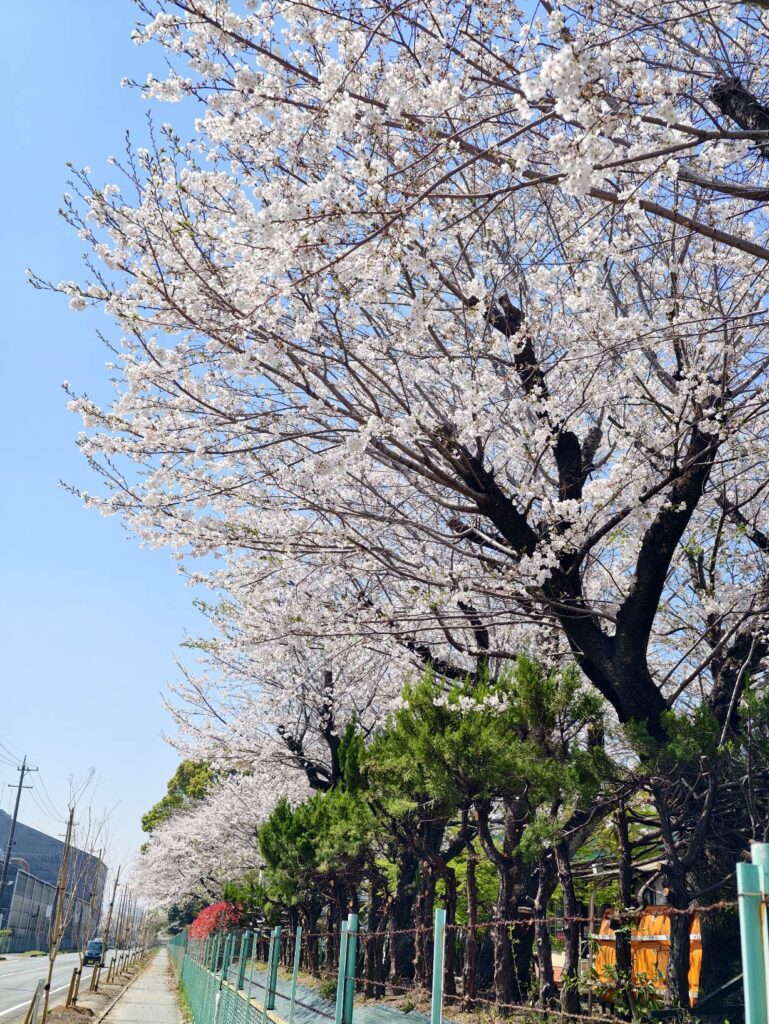少し歩いて振り返って撮影した金曜日の桜がこちら。