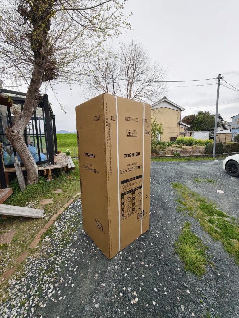 そして、新しい冷蔵庫を開梱し、これまたうまいこと玄関から搬入し、設置済の床の保護板の上に冷蔵庫を設置