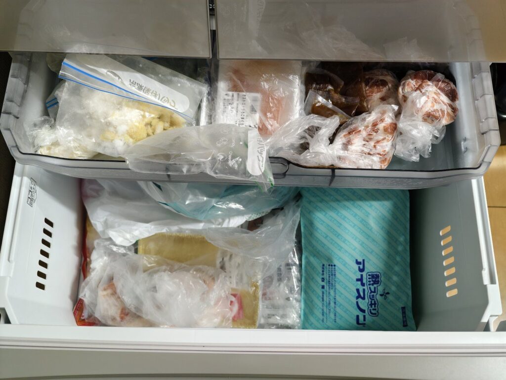 我が家は無駄に保冷剤を冷蔵庫で凍らせてあるので、保冷バッグ(キャンプ用クーラーバッグはキャンカーに積みっぱなし(-_-;))に大量に投入し冷凍品や痛みやすそうな食材はそちらに保管。