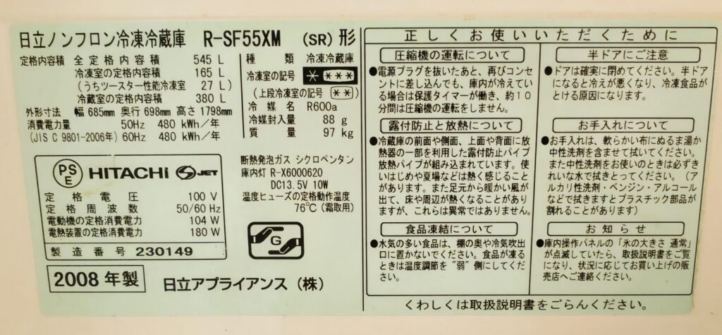 上の冷蔵庫は容量545Lの日立製で、確か10万円台前半で購入できた気がするのですが、今、家電量販店で並んでいるのは、30~40万円がざらで、安くても20万円台