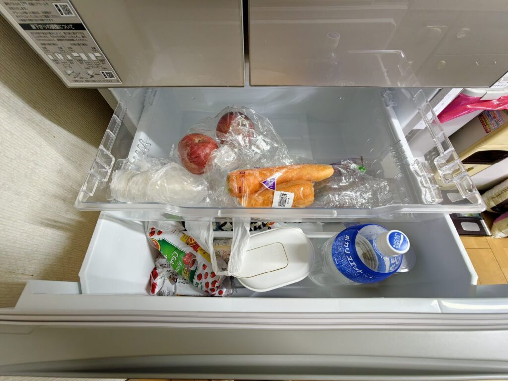 野菜室には野菜・果物の他に2Lのペットボトルや作り置きの麦茶を入れることが多く使用頻度も高いのでこれはアリかなと。