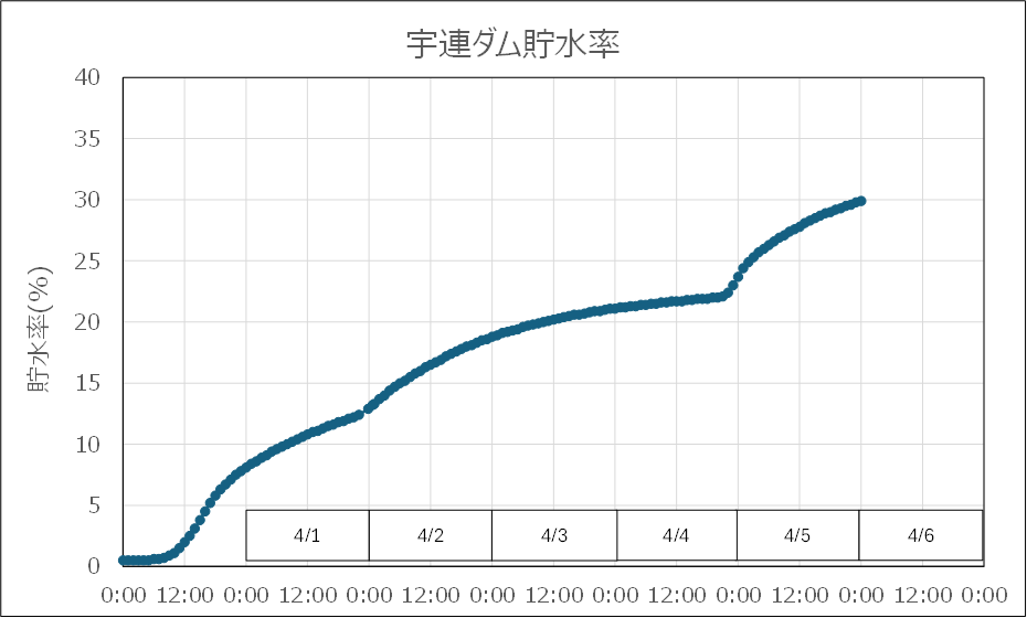 もう一雨降れば、例年並みかやや少ない程度に貯水率も戻れそうです。