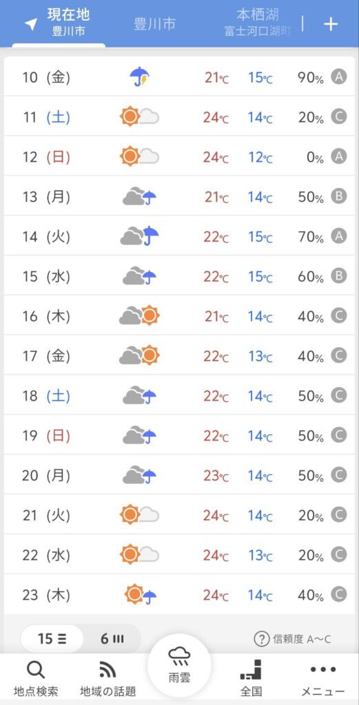 更に来週になるとこれまた梅雨時期のような雨天が続きそうだし。