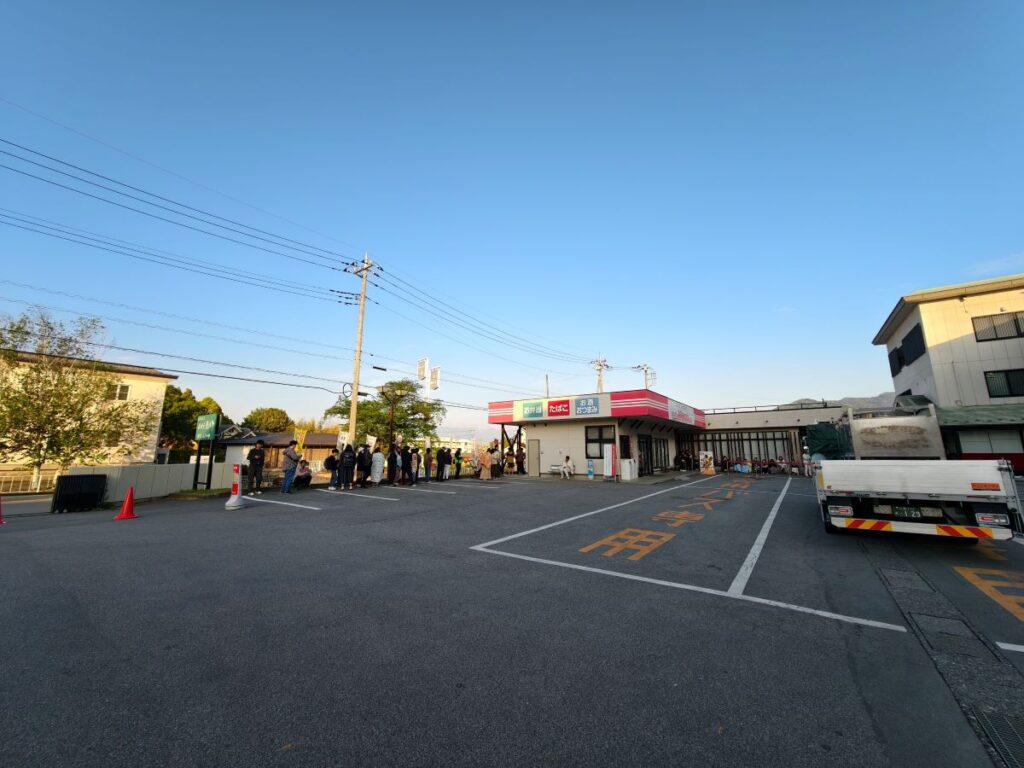 6時になると信玄餅詰め放題の整理券待ちの列はこんなに伸びていました。