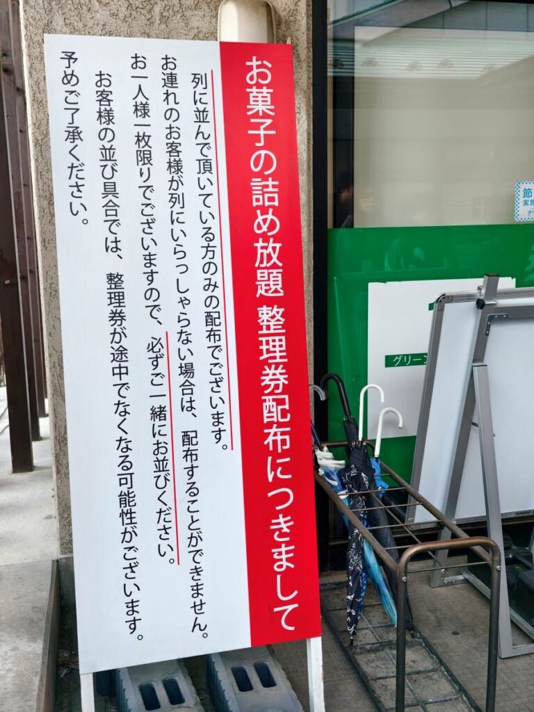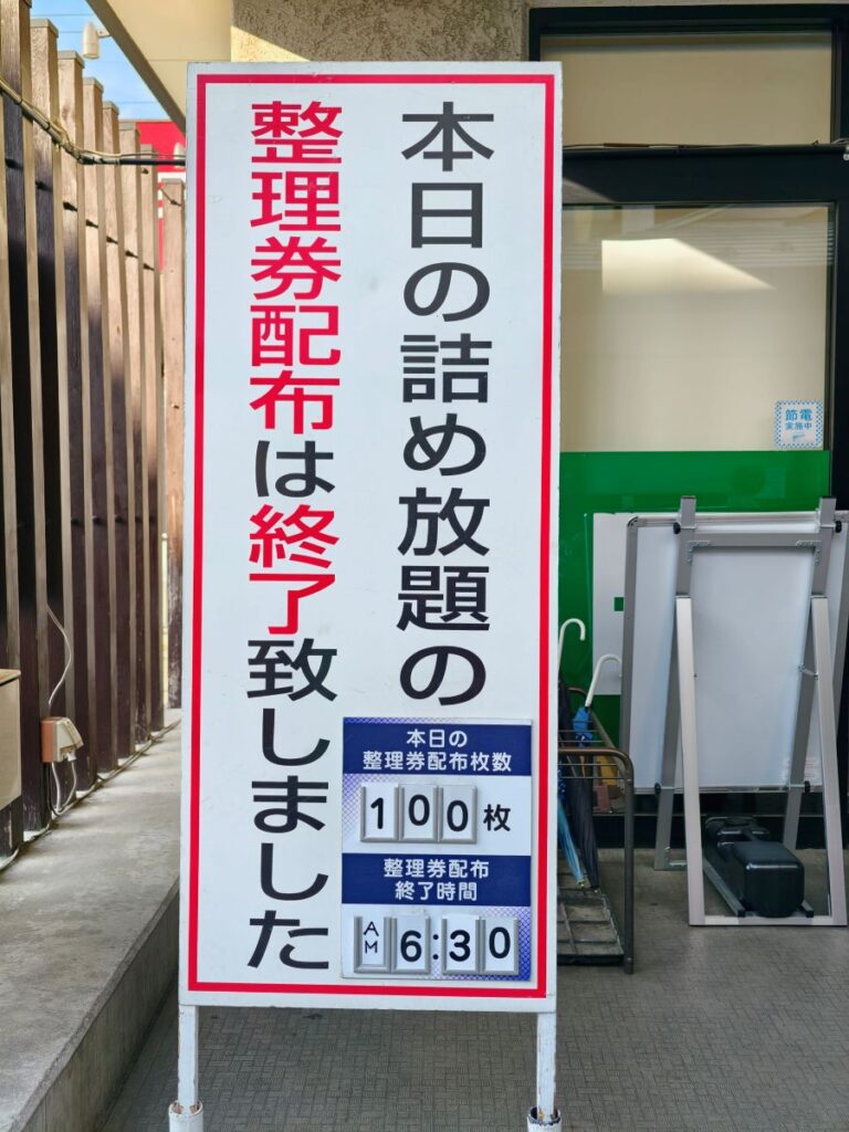 そしてお腹が満ちてレストランを後にして詰め放題会場の前を通ると整理券配布終了の看板が・・・