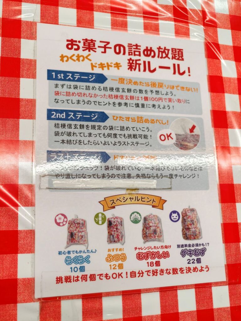 こうして全員15個の袋詰めに成功し、追加料金を払うことなく1人220円で高級菓子信玄餅を各自15個もゲットすることができました♪