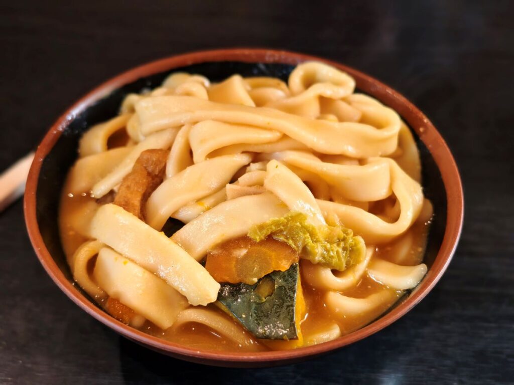 早朝から起きてパンを少々食べただけでお腹が空いていたので、こんなにがっつりほうとうを頂きました♪