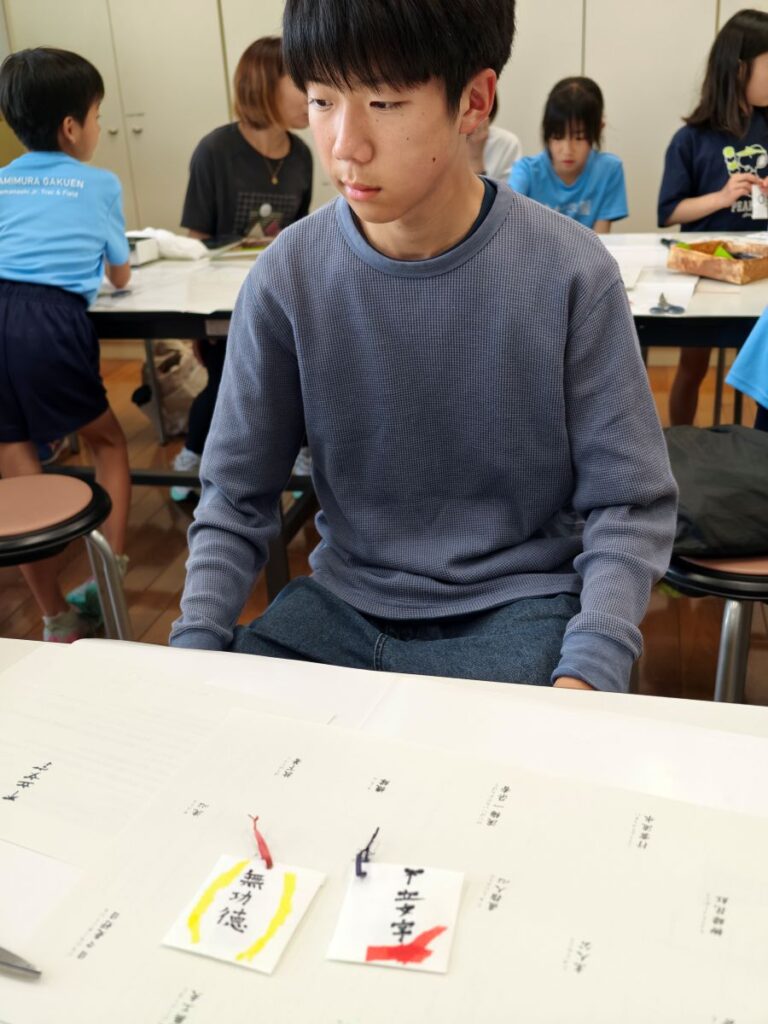 線香を砕いた和紙から作った袋に入れて、外袋に入れて、表に禅宗に関係する言葉を書いたら終わりですがちょっと楽しかった。