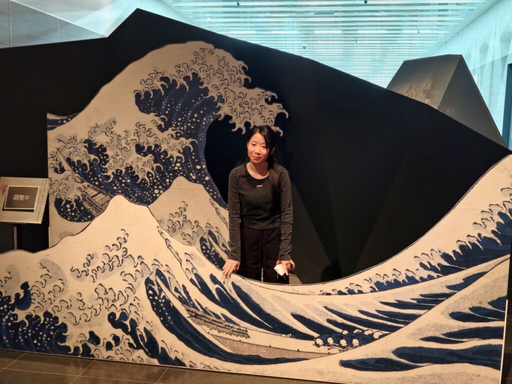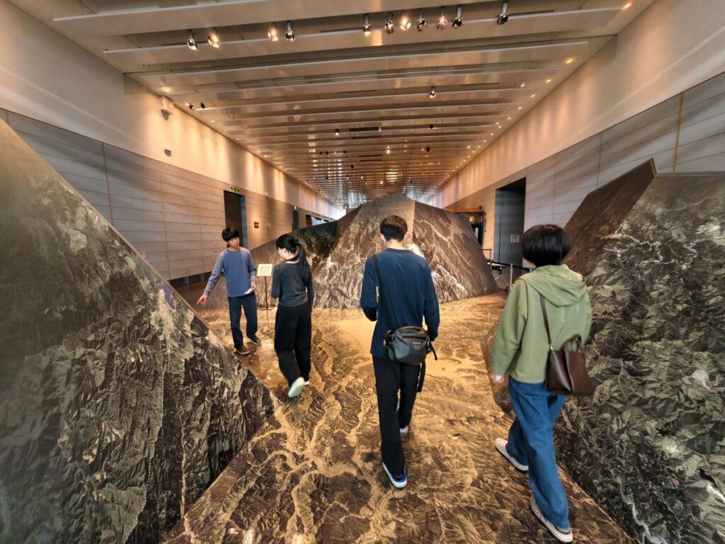 やまありやまなしの標語のままに地形図を立体的に現したエリアを通って、海が羨ましい山梨らしい富岳三十六景の「神奈川沖浪裏」にて撮影