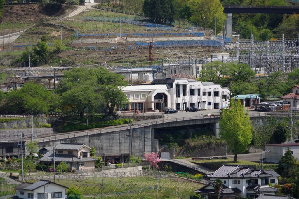向こうの山には昨年ゆるキャン△聖地巡礼で行った勝沼ぶどう郷駅が見えます。
