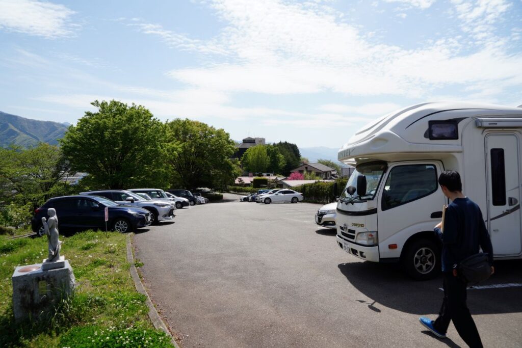 一番高い駐車場P‐2の更に一番高い位置にキャンカーを止めると目の前にはこんな石像が。